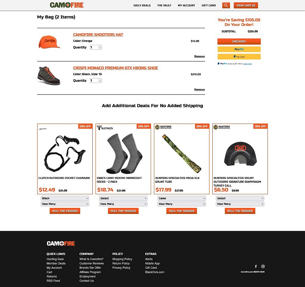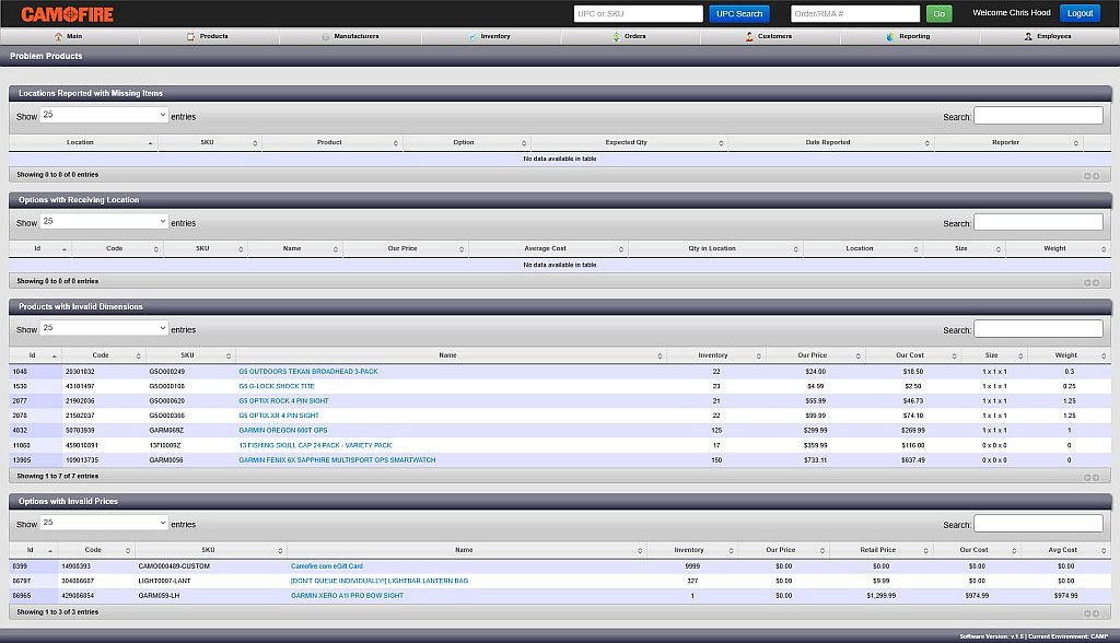 Camofire was a custom ecommerce website built on a discontinued framework called Agavi and a PostgreSQL database. Over 10 years, Chris rebuilt most of the site and added many features. He worked on both the frontend and backend for the public side and the admin.