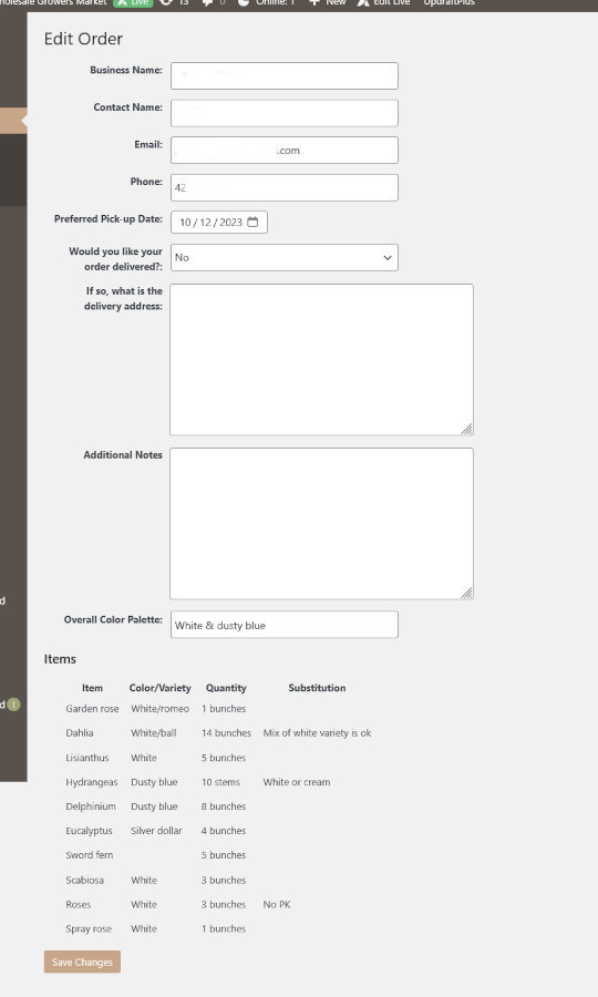 Seattle Wholesale Growers Market Custom Order Request Plugin